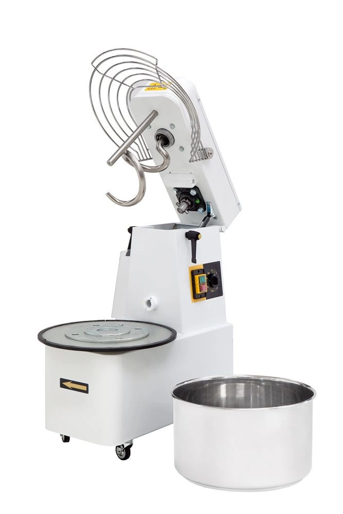 Špirálový mixér s odnímateľnou misou s objemom 32 litrov a zdvíhanie hlavy. 2 rýchlosti. Mixér je ideálny pre pizzerie, cukrárne, pekárne. Kryt vyrobený z kvalitnej bielej lakovanej ocele. Misa, bezpečnostné veko, špirála z nehrdzavejúcej ocele 18/10. Tichá prevádzka olejového prevodu. Mixér má: tlačidlo zmeny rýchlosti (2 rýchlosti), mikrospínač bezpečnostného veka a zabudovaný časovač.