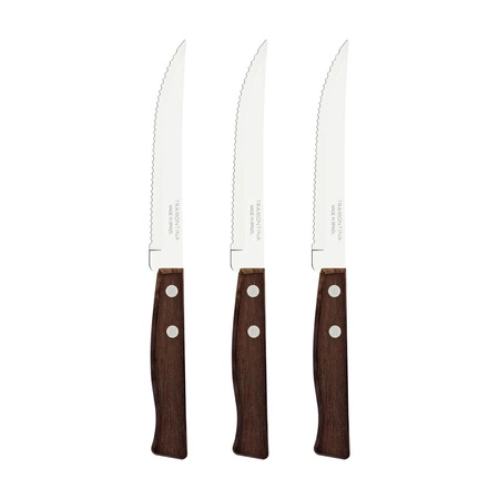 Sada 3 steakových nožov TRADICIONAL je esenciou kvality a funkčnosti, ideálna pre všetkých milovníkov mäsových špecialít. Tieto nože sú navrhnuté tak, aby poskytovali presný rez, čo z nich robí nevyhnutnú súčasť každej kuchyne.