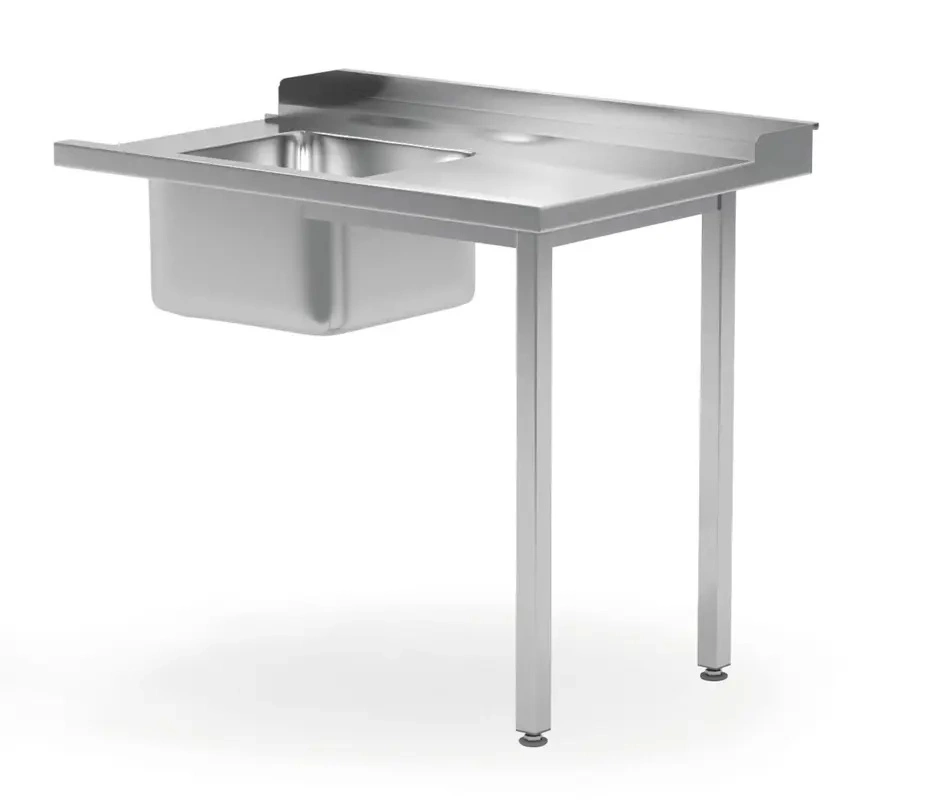 Nakladací stolík pre umývačky riadu s drezom značky HENDI, je robustné a funkčné riešenie, ideálne pre profesionálne kuchyne a umývačky riadu. Je vyrobený z nehrdzavejúcej ocele AISI 304, čo zaručuje trvanlivosť, odolnosť voči korózii a jednoduché udržiavanie hygieny. Stolová doska je znížená a má 51 cm široké vedenie koša, ktoré uľahčuje efektívne vkladanie a vykladanie riadu. Okrem toho je vybavený háčikmi na rýchle a stabilné pripojenie k umývačkám riadu s odsávačom pár. Dve nohy zo štvorcového profilu z nehrdzavejúcej ocele sú výškovo nastaviteľné, čo umožňuje nastavenie do pohodlnej pracovnej výšky. Dodatočný okraj na hornej strane zabraňuje rozlievaniu vody, čím pomáha udržiavať okolie stanice čisté a hygienické.