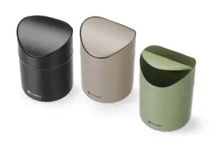 - Pohodlie používania: Výklopné veko je možné rýchlo zložiť, čo umožňuje jednoduché vyprázdnenie koša a čistenie jeho vnútra. Malý priemer umožňuje pohodlné umiestnenie koša aj na malých stoloch, bufetoch alebo recepciách.