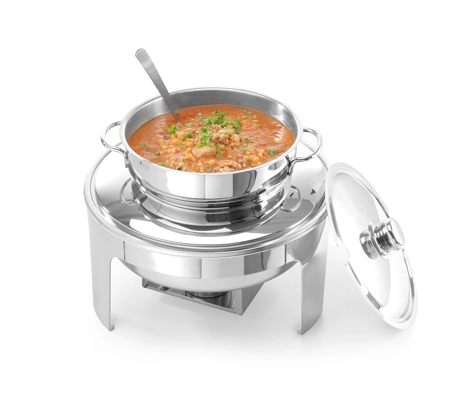 Ohrievač tabuľky pre polievky na pastovanie. Objem 10 l. Vyhrievanie pomocou paliva. Vyrobené výhradne z vysoko leštenej nehrdzavejúcej ocele. Vybavený nádobou na vodu, okrúhlou nádobou na polievku a nádobou na palivo. Veko nádoby s výrezom na naberačku.