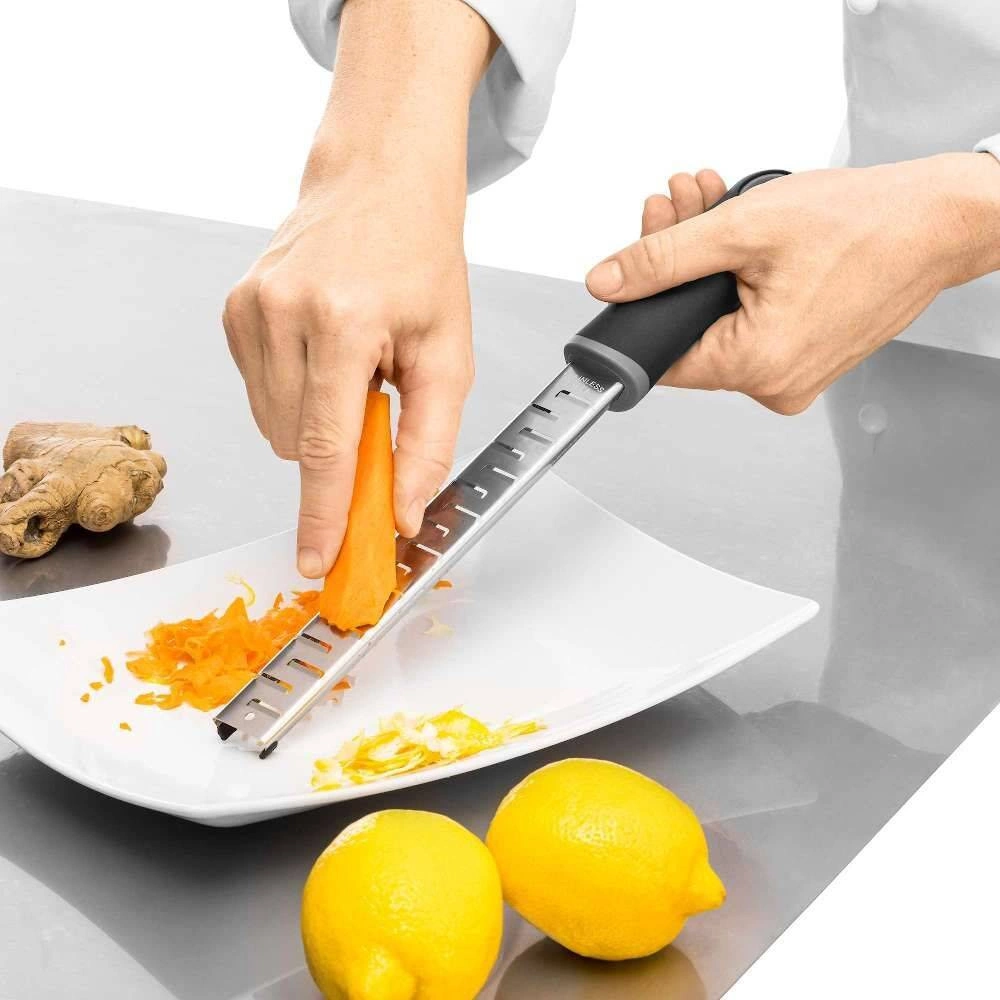 Celková dĺžka: 30 cm – Umožňuje komfortnú prácu a zaisťuje stabilitu pri strúhaní väčšieho množstva surovín. Je vhodné na prípravu jedál doma aj v gastronómii.