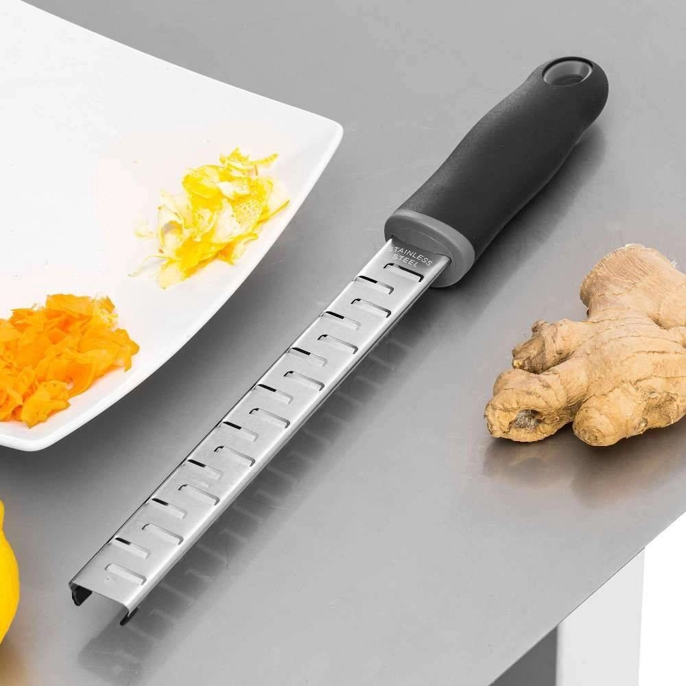 Nehdzavejúca oceľ: Ostrie strúhadla je vyrobené z vysoko kvalitnej nehrdzavejúcej ocele, čo zaručuje trvácnosť a odolnosť voči korózii. Nástroj je bezpečný pri kontakte s potravinami a ľahko sa udržiava v čistote.