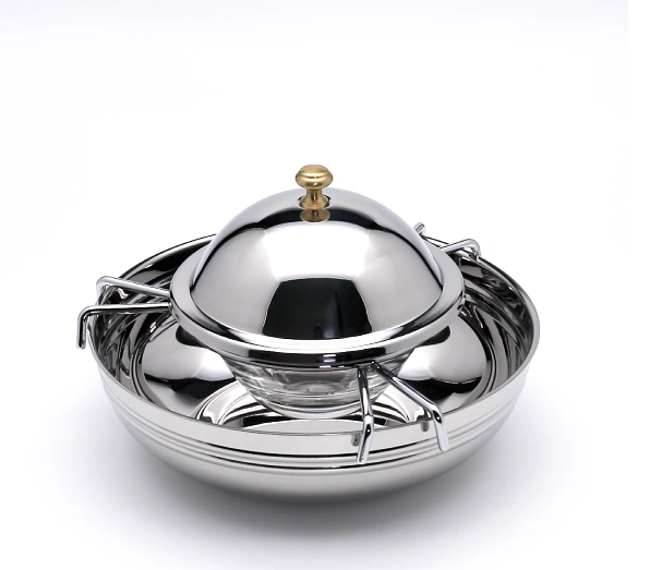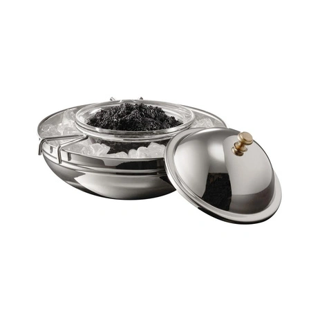Súprava je určená na profesionálne servírovanie kaviáru v reštauráciách, hoteloch alebo počas súkromných osláv. Skladá sa z misky z nehrdzavejúcej ocele, sklenenej misky s priemerom 10 cm, stabilného stojana a praktického veka. Umožňuje elegantné podávanie kaviáru a zároveň zabezpečuje správnu teplotu servírovaného produktu. Vďaka možnosti uloženia ľadu do spodnej časti misky zostáva kaviár čerstvý aj po dlhší čas.