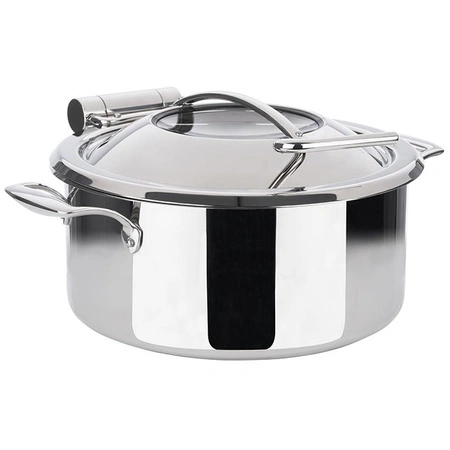 Súprava s hrncom na indukčný ohrievač je praktickým riešením pre gastronomické prevádzky, catering aj domáce oslavy, kde je dôležité rýchle a efektívne ohrievanie alebo servírovanie jedál v optimálnych podmienkach. Vyznačuje sa vysokou kvalitou spracovania z nehrdzavejúcej ocele 18/8, prítomnosťou skleneného okienka vo veku a možnosťou použitia na indukčných varných doskách, čo výrazne zvyšuje jeho funkčnosť.