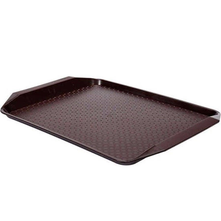 Čašnícky podnos na rýchle občerstvenie Obdĺžnikový, 43x30 cm. Hnedej farby. Vyrobené z kvalitného polypropylénu, ktorý zaručuje veľkú tuhosť a odolnosť . Zásobník má okraje, ktoré zabraňujú vypadávaniu výrobkov. Podnos je ideálny do barov, na stolyóa pod. Ľahko sa udržiava v čistote.