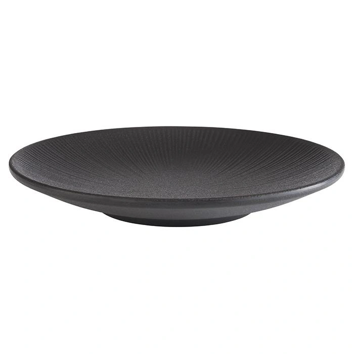 Tanier je vyrobený z vysoko kvalitného melamínu, čo zaručuje jeho odolnosť voči poškodeniu a ľahkú údržbu. Bezpečné, zaoblené hrany a premyslená výška 3 cm zabraňujú posúvaniu jedla. Čierny povrch taniera je matný, čo umocňuje vizuálny dojem pri prezentácii jedál.