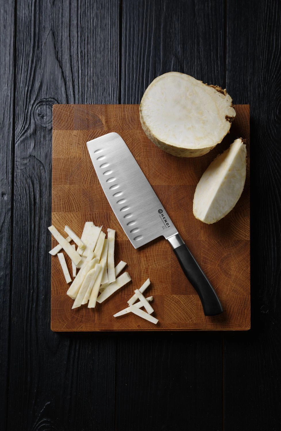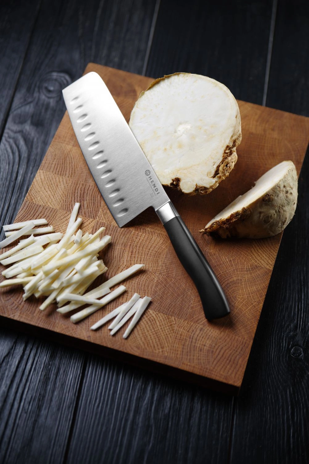 Guľôčkový sekáčik Profi Line. Čepeľ vyrobená z kvalitnej nemeckej uhlíkovej ocele. Kovaná za tepla z jedného kusu ocele. Špeciálna zliatina chrómu, molybdénu a vanádu zaručuje vynikajúce rezné vlastnosti, ostrosť, ľahké ostrenie a odolnosť voči znečisteniu. Hygienická konštrukcia rukoväte zabraňuje hromadeniu zvyškov v miestach spojov.