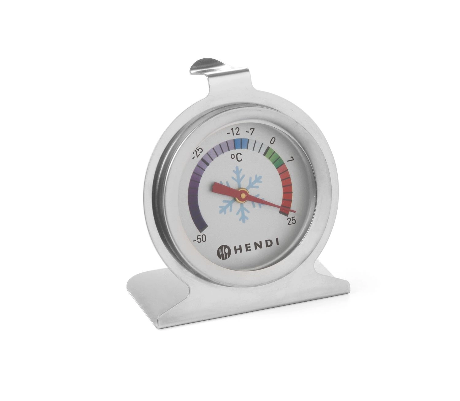 Univerzálny teplomer pre chladiace a mraziace zariadenia s ľahko čitateľným ciferníkom. Vyrobené z nehrdzavejúcej ocele. Teplotný rozsah od -50oC až +25oC. Má špeciálny prívesok a podstavec.