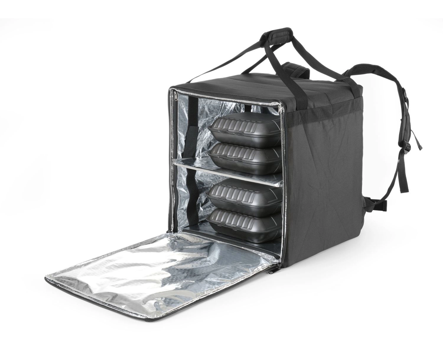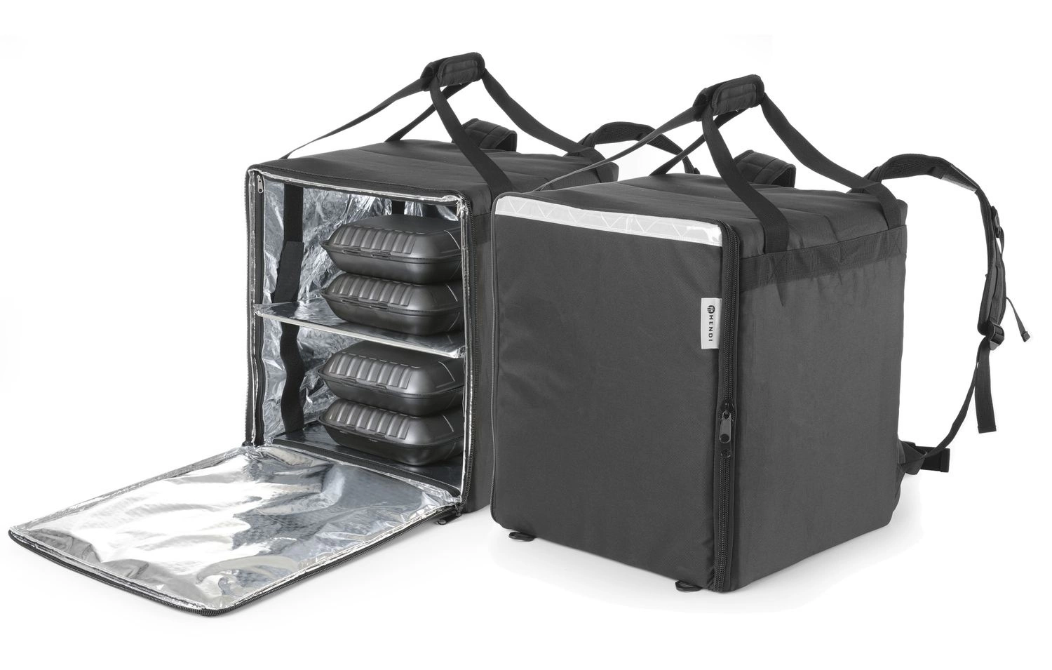 Taška značky Hendi na prepravu pizze. Vyrobené z polyesteru. Obsahuje priehľadné vrecko na účtenky. Odnímateľná výstužná podložka. Do priehradky sa zmestí až 10 krabíc na pizzuós. Môže sa používať aj ako batoh.