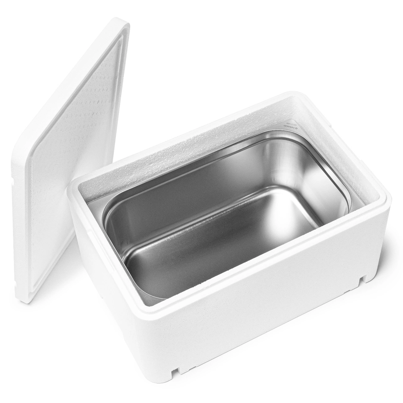 Termoizolačný polystyrénový kontajner GN 1/1 200 FORGAST FG05417 je špecializovaný kontajner určený na skladovanie a bezpečnú prepravu potravín, ktoré vyžadujú udržiavanie správnej teploty. Vyznačuje sa veľkou kapacitou a pevnou tepelnou izoláciou, čo z neho robí nenahraditeľný prvok v gastronómii, cateringu alebo pri preprave rýb a morských plodov.
