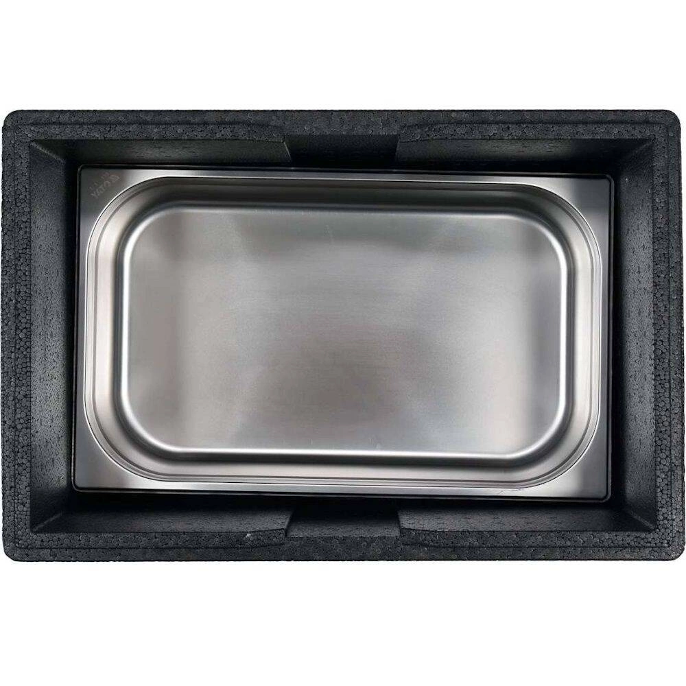 Izolovaný kontajner GN 1/1 od spoločnosti YATO. Kontajner s vekom určený na prepravu teplých a studených potravín v gastronómii. Vyrobené z PIOCELANU, inovatívneho hybridu najnovšej technológie, ktorý spája vynikajúce tepelnoizolačné vlastnosti s vysokou mechanickou pevnosťou. Vyznačuje sa vysokou odolnosťou proti opotrebovaniu a nárazom a chemickou odolnosťou. Okrem toho sa veľmi ľahko čistí, pretože sa dá umývať v umývačke riadu. Nádoba má vonkajšie rozmery 60 × 40 × 28,3 cm a hrúbku steny 30 mm a jej objem je 40 litrov. Vnútorné rozmery sú 540x340x222 mm a umožňujú prepravu nádoby GN: