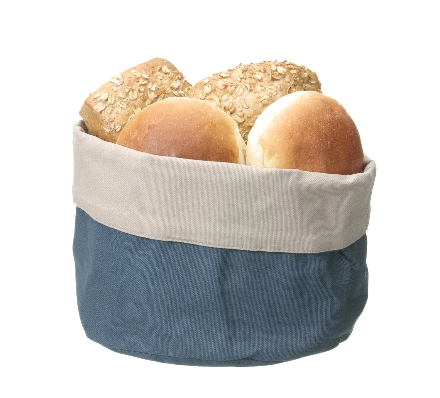 Okrúhly bavlnený vrece na chlieb v tmavomodrej farbe. Ideálne na prezentáciu a servírovanie chleba. Vyrobené z odolnej bavlny. Možno prať v práčke.
