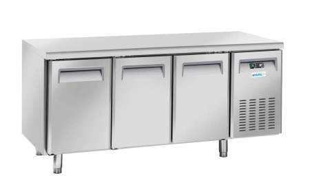 Trojdverový mraziaci stôl ARKTIC 236741 s bočnou jednotkou je profesionálne zariadenie na intenzívne používanie v kuchyniach verejného stravovania, ktoré spája mraziaci výkon, odolnosť a jednoduché každodenné používanie. Celonerezová konštrukcia zaručuje odolnosť proti poškodeniu, hygienu a jednoduché čistenie aj pri veľmi veľkom zaťažení.