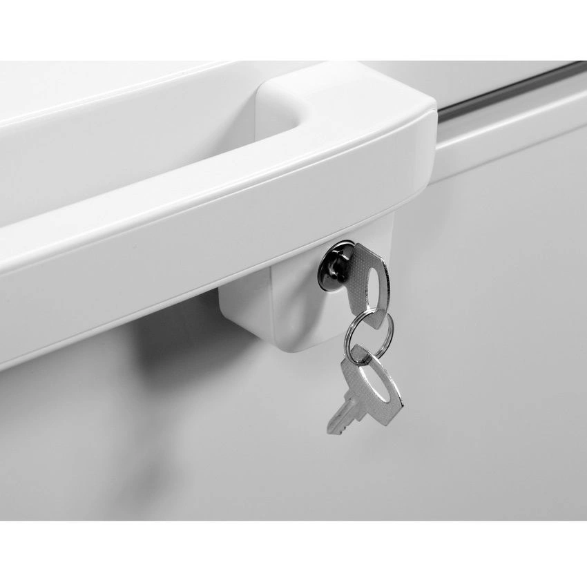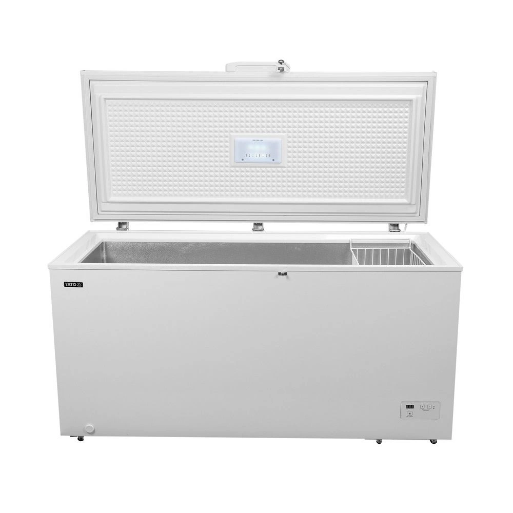 Truhlicová mraznička YATO s celkovým objemom 488 litrov. Je určený na skladovanie potravínóC pri teplotách od 10óC do -24óC. Samozatváracie výklopné dvierka so zámkom zabezpečujú ľahký prístup k obsahu a zároveň udržiavajú konštantnú teplotu vo vnútri, čo je kľúčové pre zachovanie čerstvosti výrobkovóC. Zámok zaručuje bezpečnosť uložených výrobkovós. Zariadenie má elektronické ovládanie s digitálnym displejom, ktoré umožňuje presnú kontrolu a nastavenie podmienok skladovania podľa konkrétnej potreby.