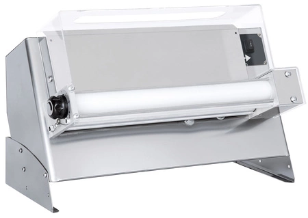 Elektrický stroj na tvarovanie pizze (valcovací stroj) Vyrobené z nehrdzavejúcej ocele. Elektrický nožný pedál. Ideálny spotrebič na vyvaľovanie studeného cesta na pizzu, knedle a cestoviny. Spotrebič má automatický spínač "touch and go", vďaka ktorému sa valček automaticky zapne po vložení cesta. Prevádzkový čas je možné nastaviť v rozmedzí 10-35 sekúnd. Valčeky s nastaviteľnou hrúbkou cesta 0-5 mm. Každý valec má samostatný ochranný kryt na zvýšenie bezpečnosti pri práci. Možno formovať pizze s priemerom od 26 do 45 cm. Chránené valce pre bezpečnú prevádzku. Príkon cesta: 0,21 až 0,7 kg.