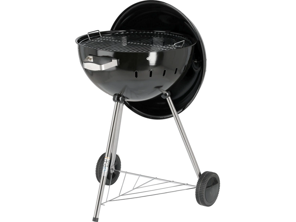3 stabilné nohy (z toho 2 s kolieskami) umožňujú jednoduché premiestňovanie grilu po záhrade alebo terase.