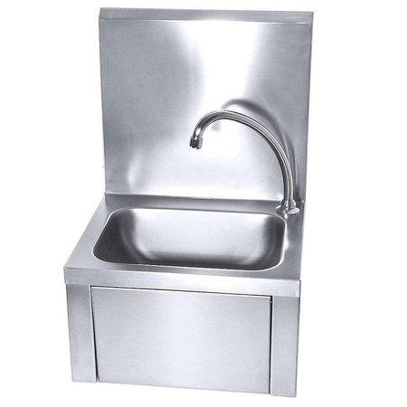 Pevná nehrdzavejúca oceľ zaisťuje odolnosť proti intenzívnemu používaniu a jednoduché čistenie. Premyslená konštrukcia s prednou stenou aktivovanou kolenom umožňuje rýchle a pohodlné využívanie umývadla bez nutnosti dotýkať sa akýchkoľvek ovládacích prvkov rukami. Jednoduchá nástenná montáž šetrí miesto a umožňuje produkt prispôsobiť rôznym prevádzkovým priestorom.