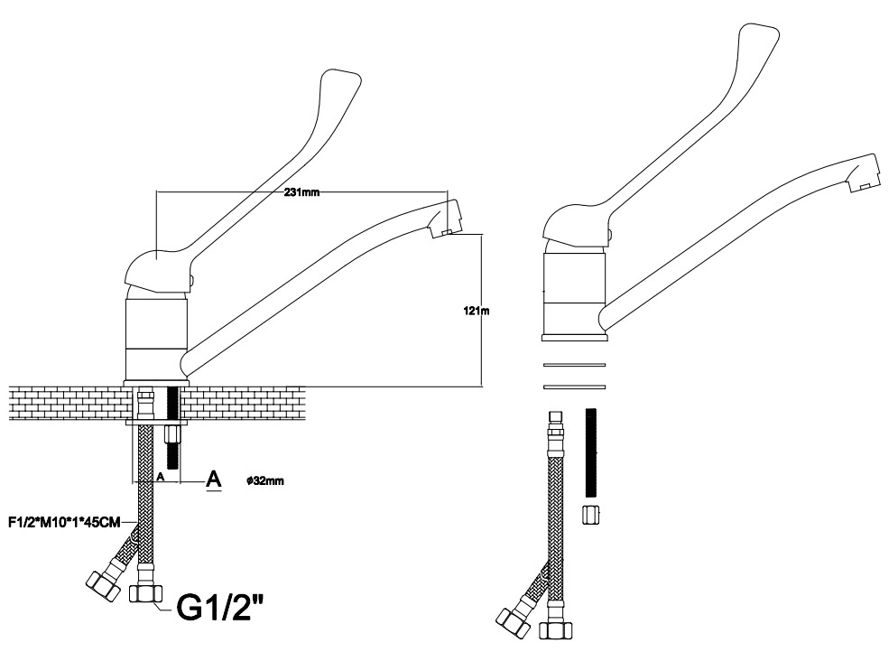 • Výška: 12,1 cm – Kompaktná konštrukcia uľahčuje montáž do väčšiny štandardných umývadiel a drezov, pričom zabezpečuje pohodlné používanie aj v obmedzenom priestore.