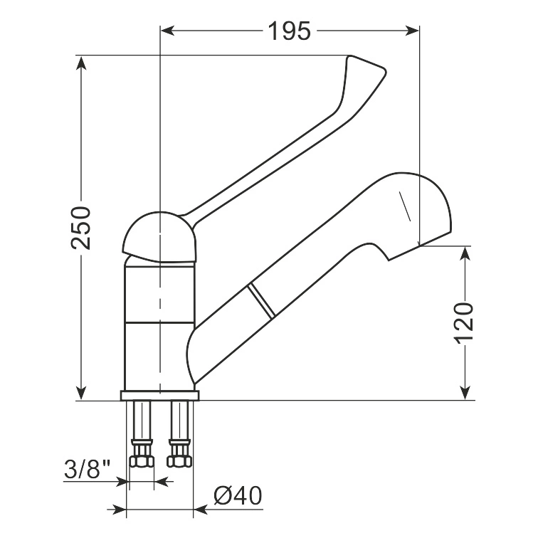 Wyciągana wylewka o długości 1 m i łokciowa dźwignia