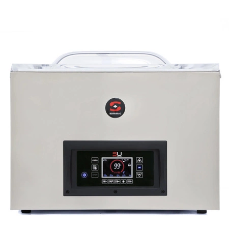 Vákuový baliaci stroj SU-420P od spoločnosti SAMMIC je profesionálne zariadenie na hermetické balenie potravín, ideálne pre stravovacie zariadenia. Baliaci stroj SU-604P je vybavený dvojitou tesniacou linkou a špičkovou vákuovou olejovou vývevou Busch, vďaka čomu zabezpečuje tesné a trvanlivé utesnenie, ktoré je kľúčové pre zachovanie čerstvosti potravín.