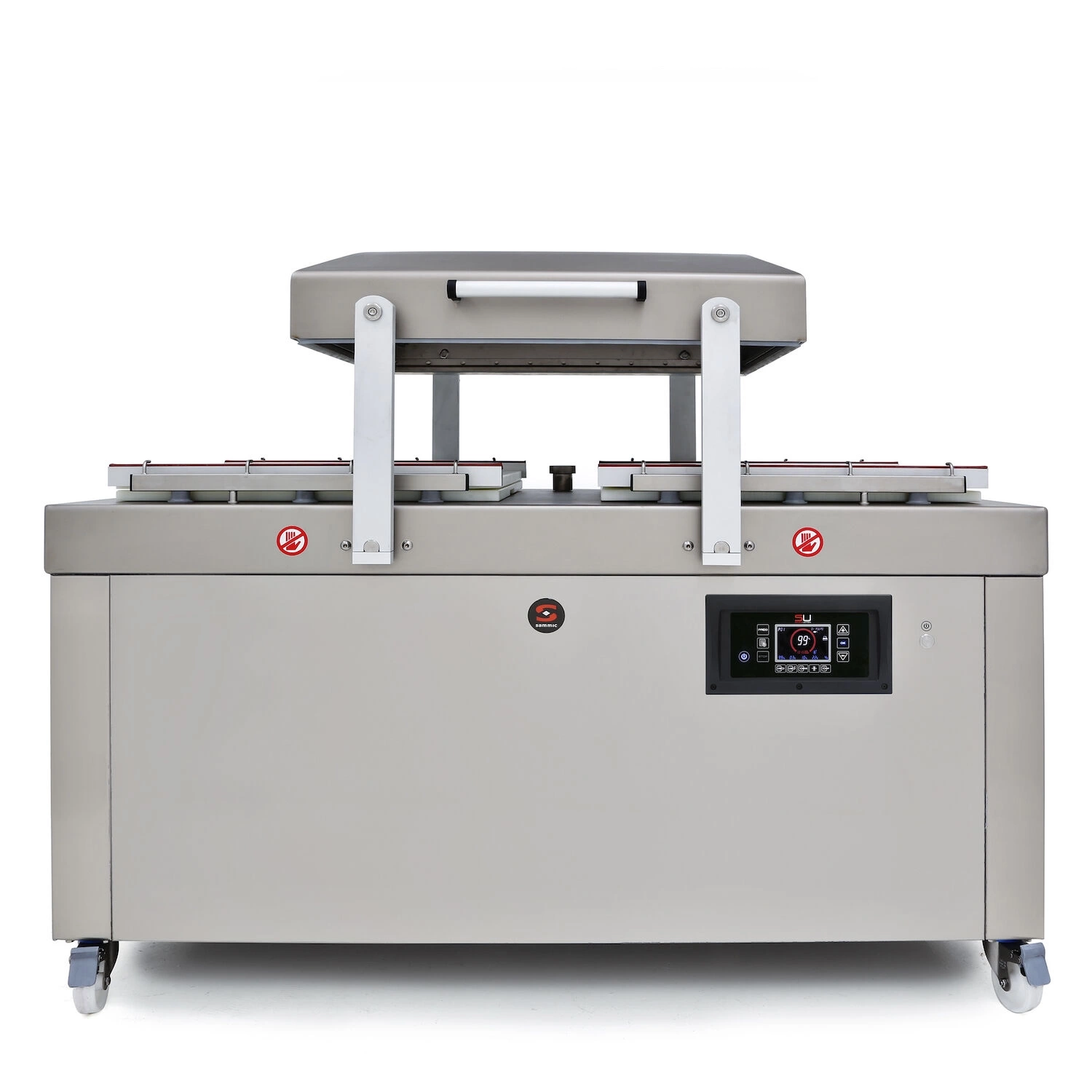 Vákuový baliaci stroj SU-6100P od spoločnosti SAMMIC je profesionálny hermetický baliaci stroj na potraviny, ideálny pre gastronómiu. Je vybavený dvojitou tesniacou linkou a vysoko výkonným olejovým čerpadlom Busch a zaručuje vzduchotesné a trvanlivé balenie. Umožňuje bezpečné balenie tekutín, výrobkov s vysokým obsahom vody a tiež chúlostivých potravín.