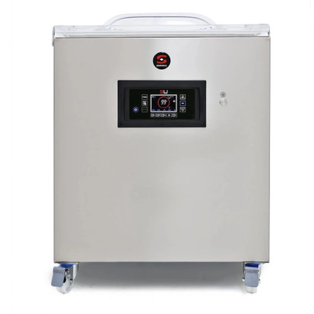 Na použitie v profesionálnom stravovaní na hermetické balenie potravín. Komora je vyrobená z odolnej ocele. Vysoko trvanlivé a odolné voči vonkajším vplyvom. Priehľadný kryt. Dvojitý tesniaci pás na vzduchotesné a odolné balenie. Primeraný výkon, výkonné čerpadlo a priestranná komora na rýchle balenie výrobkov rôznych veľkostí. Funkcia bezvzduchového uzatvárania vreciek umožňuje uzatvárať krehké výrobky bez zmeny ich štruktúry alebo uzatvárať výrobky nepravidelného tvaru bez rizika deformácie. Postupné vytváranie vákua je prispôsobené poréznym výrobkom, spracovanému mäsu alebo emulgovaným zmesiam so zachytenými vzduchovými bublinkami. Suchý olej: odvlhčovanie čerpadla - funkcia, ktorá umožňuje zachovať vysokú kvalitu oleja odstránením prebytočnej vlhkosti. Režim marinovania - opakovaný cyklus vytvárania vákua a uvoľňovania vzduchu z vrecka. Vrecká s marinovanými výrobkami sa dajú uzavrieť, pričom si zachovajú svoj objem - balenie sa vykonáva bez odsávania vzduchu. Bezpečné balenie kvapalín a výrobkov s vysokým obsahom vody - bezpečnostný systém, ktorý automaticky zastaví proces odsávania a zablokuje odsávanie kvapalín. Digitálny ovládací panel s veľkým farebným displejom. Podsvietená dotyková klávesnica z plastu odolného proti poškriabaniu. Manuálne alebo predprogramované ovládanie (25 rôznych programov generovania vákua, postupné generovanie vákua). Pripojenie Bluetooth na pripojenie k aplikáciám a správu programu. Vybavený portom pre tlačiareň. Na požiadanie: - systém tlače štítkov s možnosťou pripojenia tlačiarne so samolepiacimi štítkami odolnými voči mrazu (zadávanie textu prostredníctvom aplikácie) - Externá vákuová súprava Vac-Norm na balenie do špeciálnych nádob s automatickým odsávaním - systém vstrekovania ochranného plynu, ktorý umožňuje vákuové balenie potravín v atmosfére bez kyslíka a vodných pár, čo umožňuje lepšiu ochranu výrobku pred vonkajšími vplyvmi - Plus systém na uzatváranie vriec z hrubších fólií a metalizovaných vriec. Dĺžka tyče: 848+848 mm Kapacita vákuového čerpadla: 100 m3/h Rozmery komory: 864x603x(H)215 mm Čistá hmotnosť: 250 kg Zahrnuté: 1 plniaca doska z polykarbonátu Stabilizačná doska na uľahčenie vrecovania kvapalín - je potrebné zakúpiť samostatne (2141798) Vákuové čerpadlo BUSCH