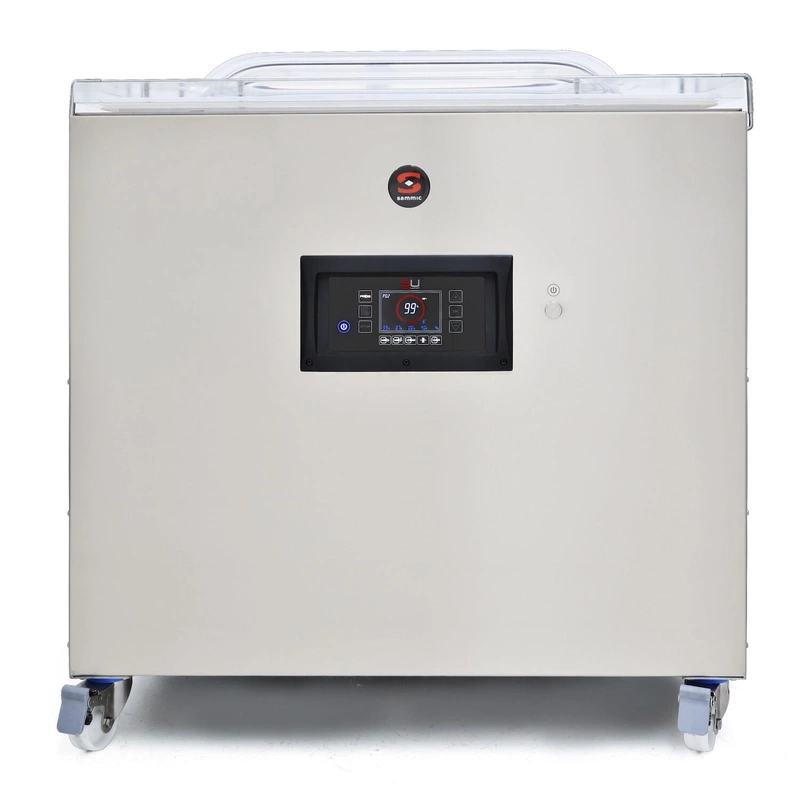 Vákuový baliaci stroj SU-806P LL od SAMMIC je moderná dvojkomorová jednotka na hermetické balenie potravín v profesionálnych kuchyniach. Baliaci stroj SU-806P LL, vybavený dvojitým tesniacim vedením a vysoko výkonnou olejovou vákuovou pumpou Busch, zaručuje maximálnu vzduchotesnosť a trvanlivosť balenia. Je ideálny na bezpečné balenie tekutín, výrobkov s vysokým obsahom vody a tiež chúlostivých potravín.