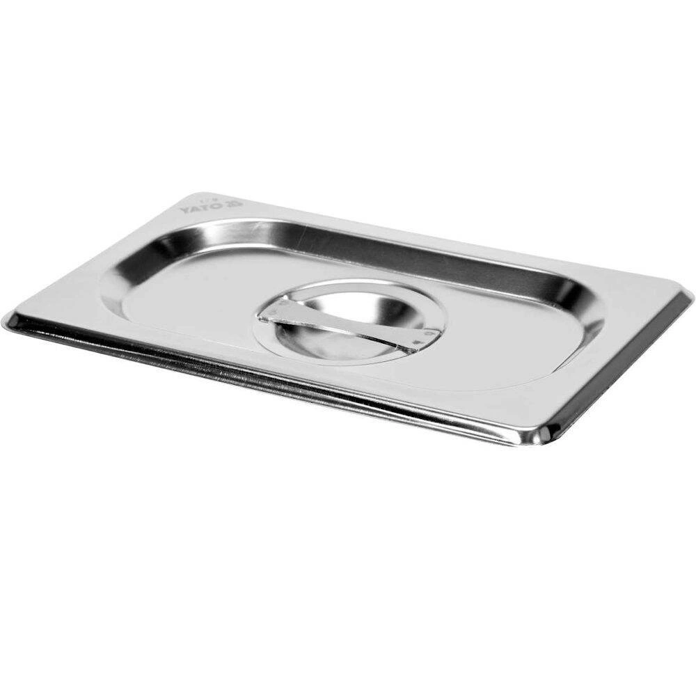 YATO veko GN nádoby z nehrdzavejúcej ocele s veľkosťou GN 1/9. . Pokrievky sú vyrobené z prvotriednej nehrdzavejúcej ocele typu 201 s matným a hladkým povrchom. Pokrievky na nádoby GNów sú určené na profesionálne použitie v zariadeniach spoločného stravovania. Používajú sa na skladovanie potravín v chladiacich a mraziacich podmienkach do -40 °C. Kontajnery sú ideálne aj pre vyššie teploty do 300 °C. Vďaka tomu sú vhodné na použitie v konvektomatoch.