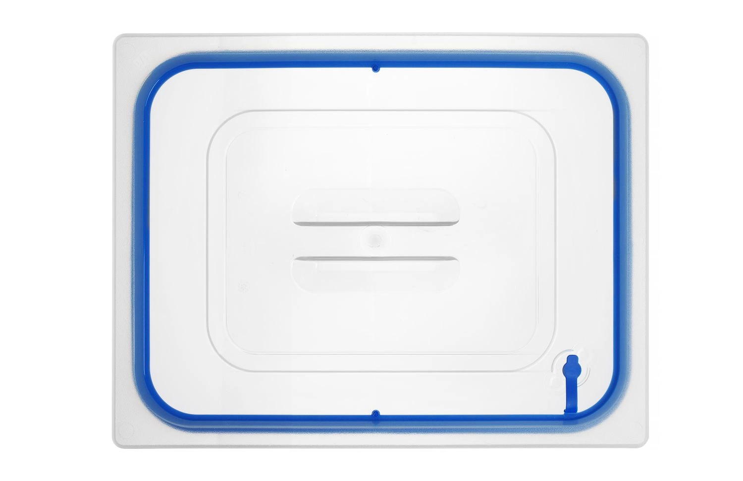 Veko pre nádoby GN 1/2 z bieleho polypropylénu. Vzduchotesné silikónové tesnenie zabraňujúce úniku počas prepravy. Okraj na ľahké odvzdušnenie a otváranie.