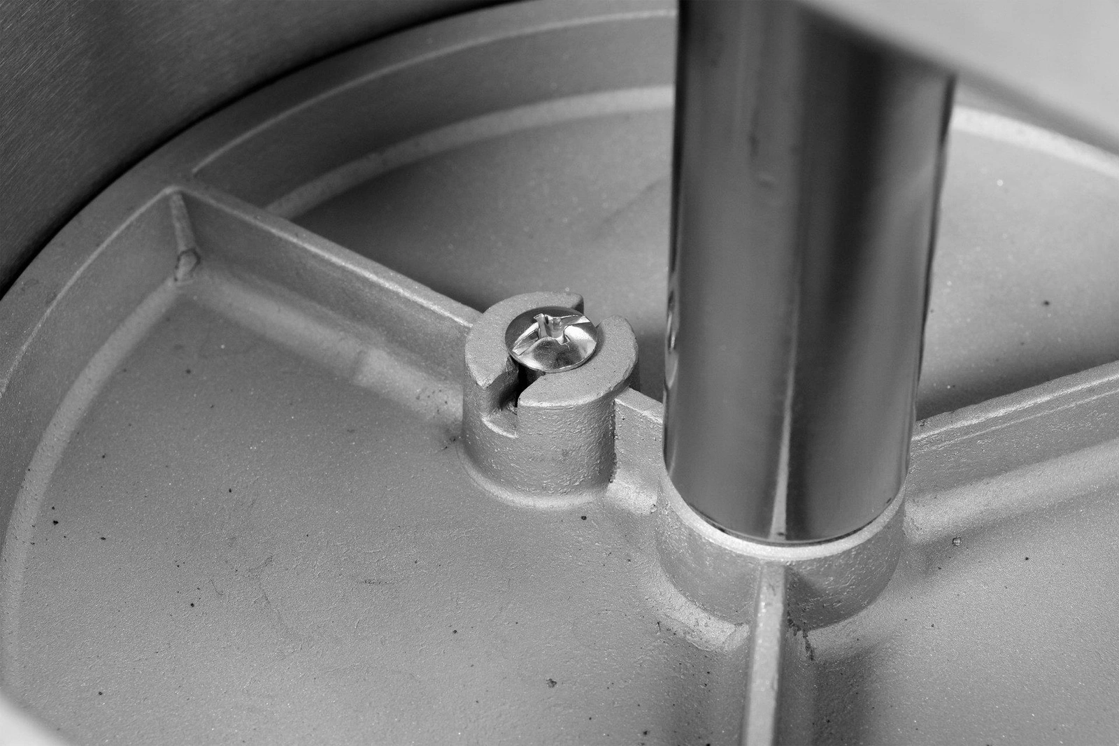 Plniaci stroj je vyrobený z odolnej nehrdzavejúcej ocele, ktorá zaručuje nielen robustnosť konštrukcie, ale aj jednoduchú údržbu. Chrómovaný povrch navyše uľahčuje proces čistenia, čo je dôležité tak pre profesionálne mäsokombináty, reštaurácie alebo cateringové spoločnosti, ako aj pre domácnosti alebo poľovníkov.