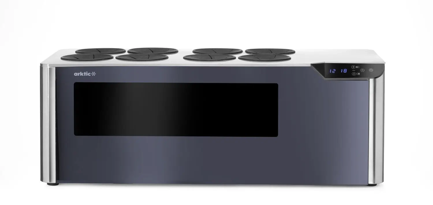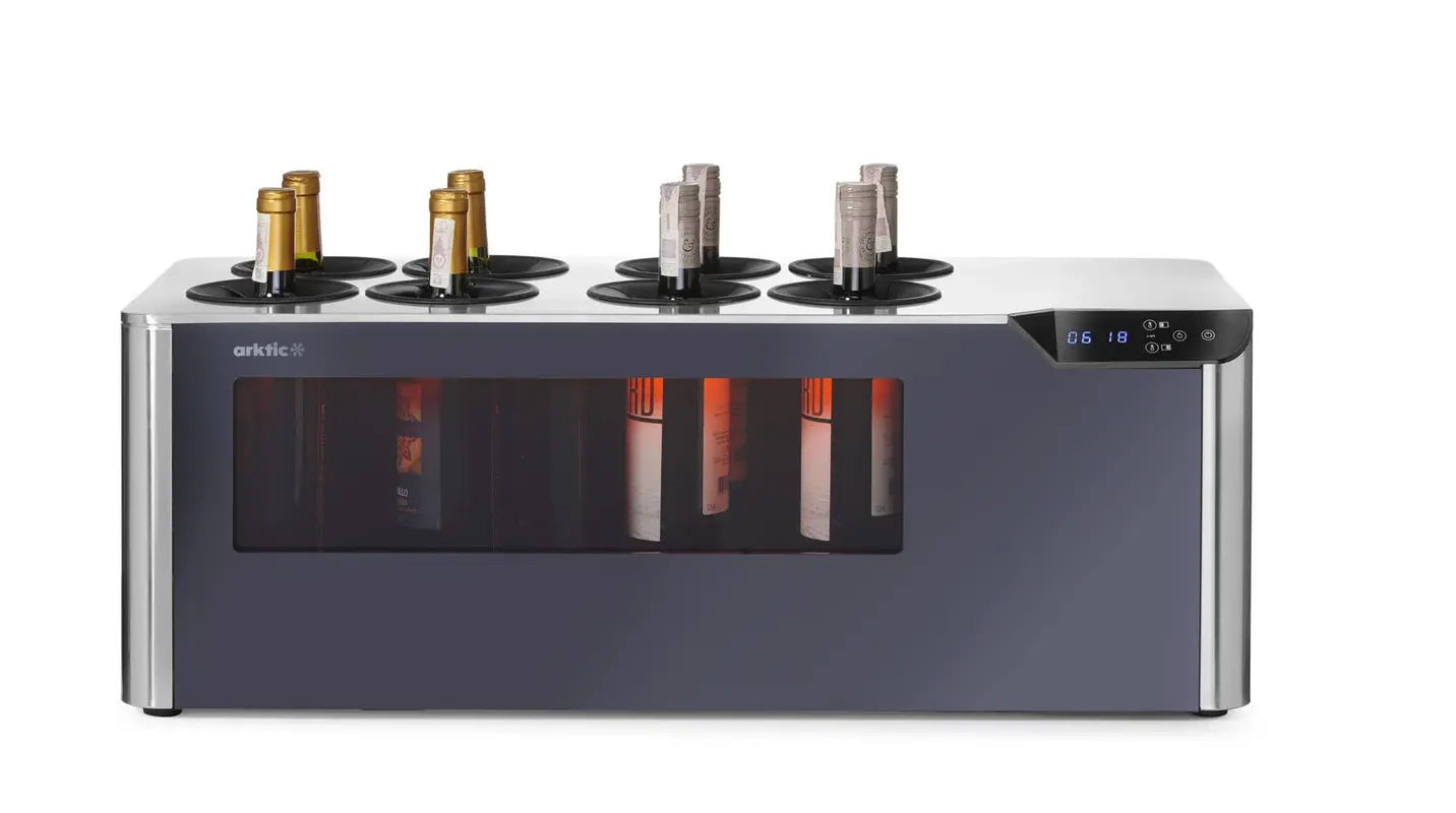 Vinotéka CELLAR na 8 fliaš je kompaktné, profesionálne zariadenie určené na skladovanie vína v kontrolovaných podmienkach. Vybavená dvoma nezávislými teplotnými zónami a elegantným čiernym plastovým krytom, je ideálnou voľbou pre gastronómiu aj domáce zbierky. Je to riešenie určené reštauráciám, hotelom, barom a milovníkom vína, ktorí oceňujú precíznosť a štýl.