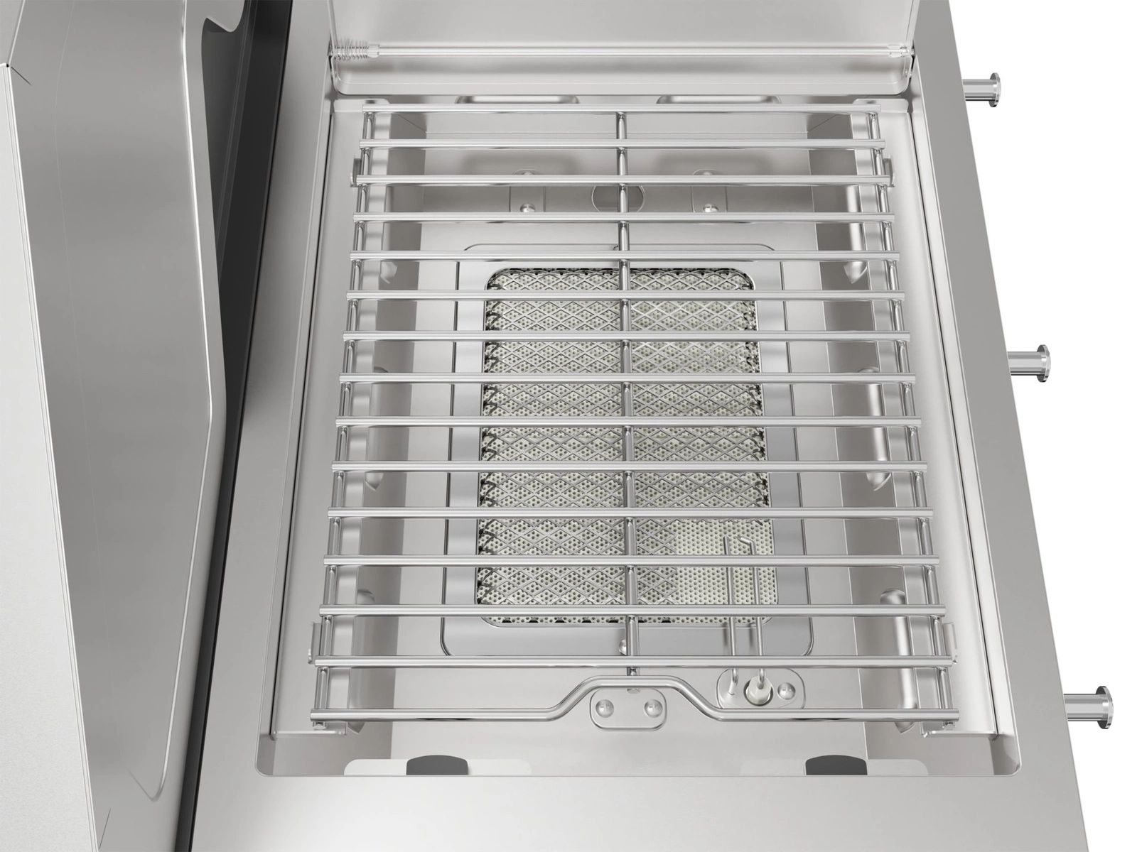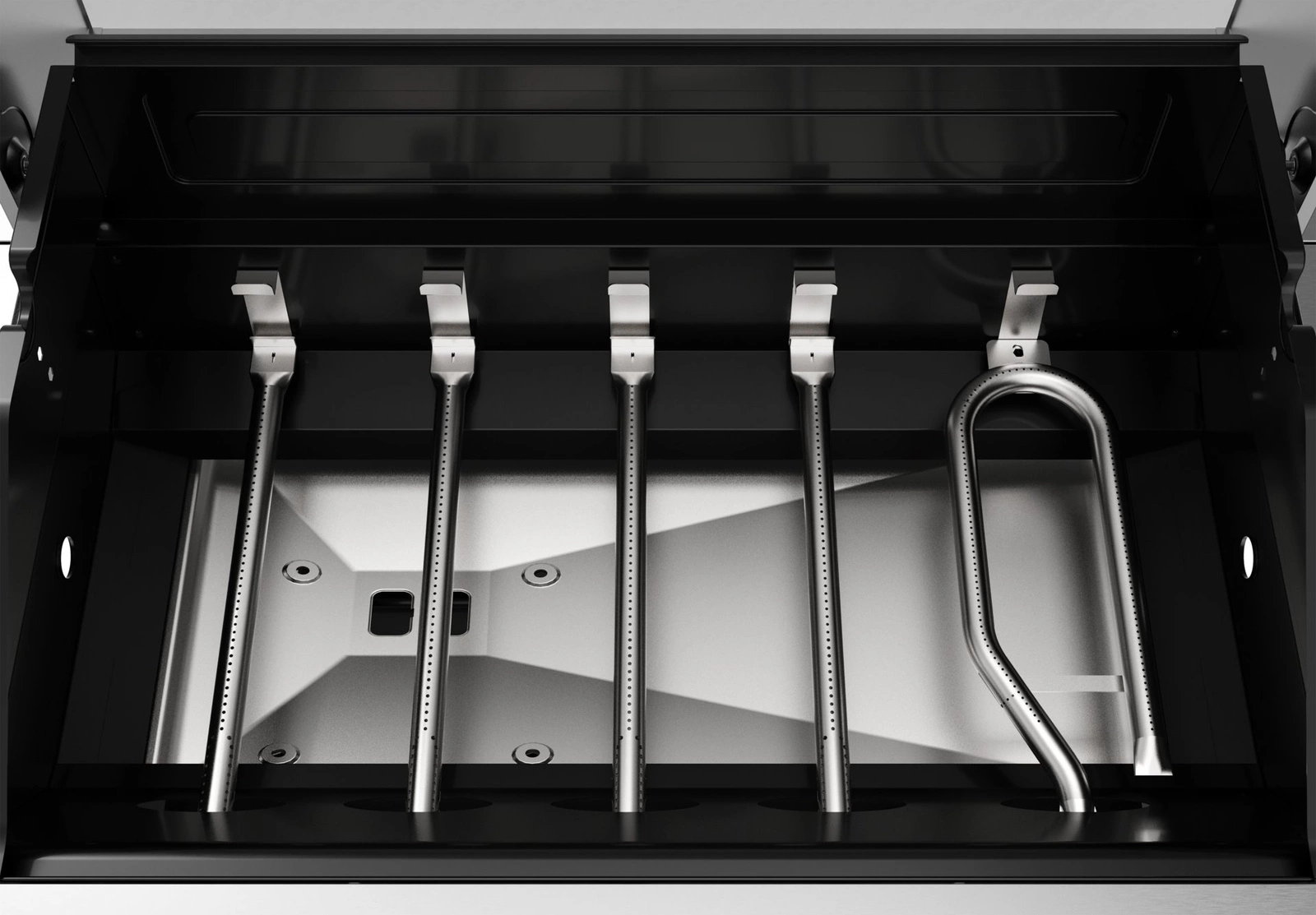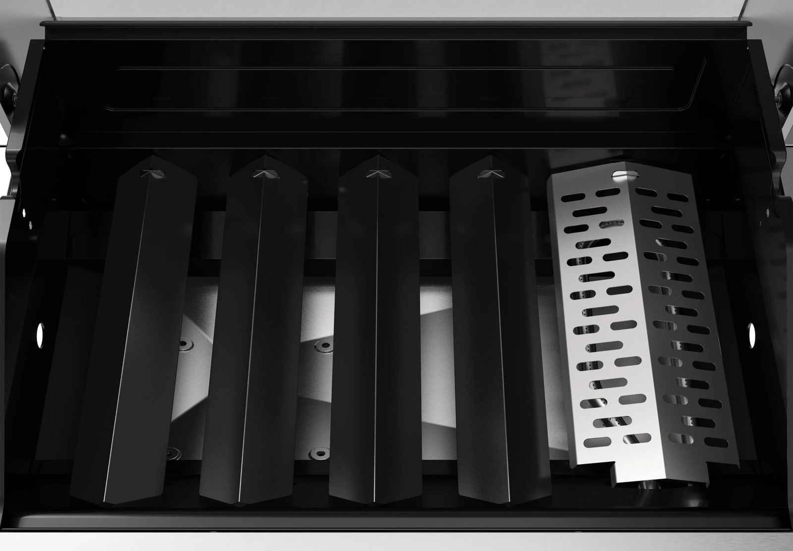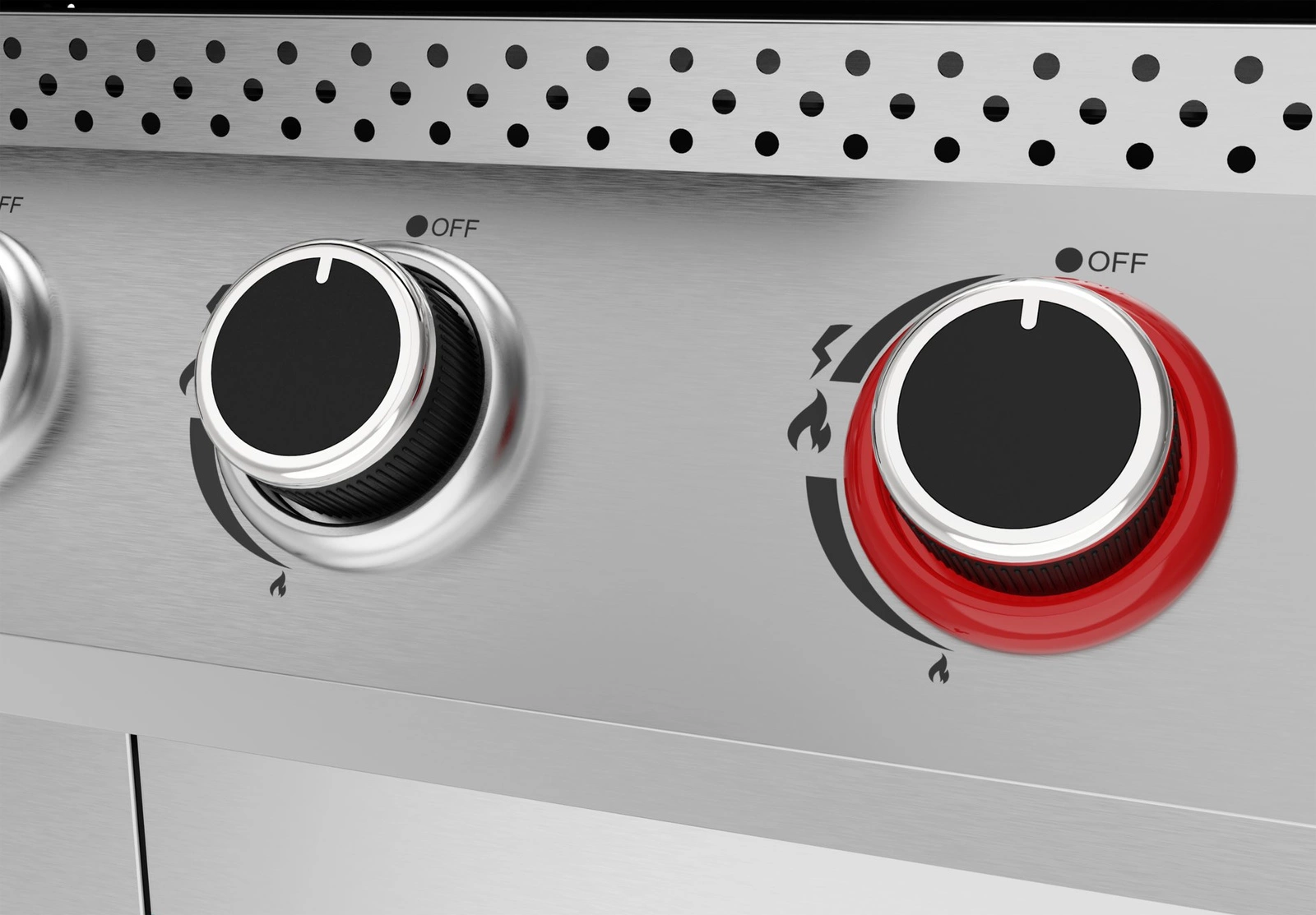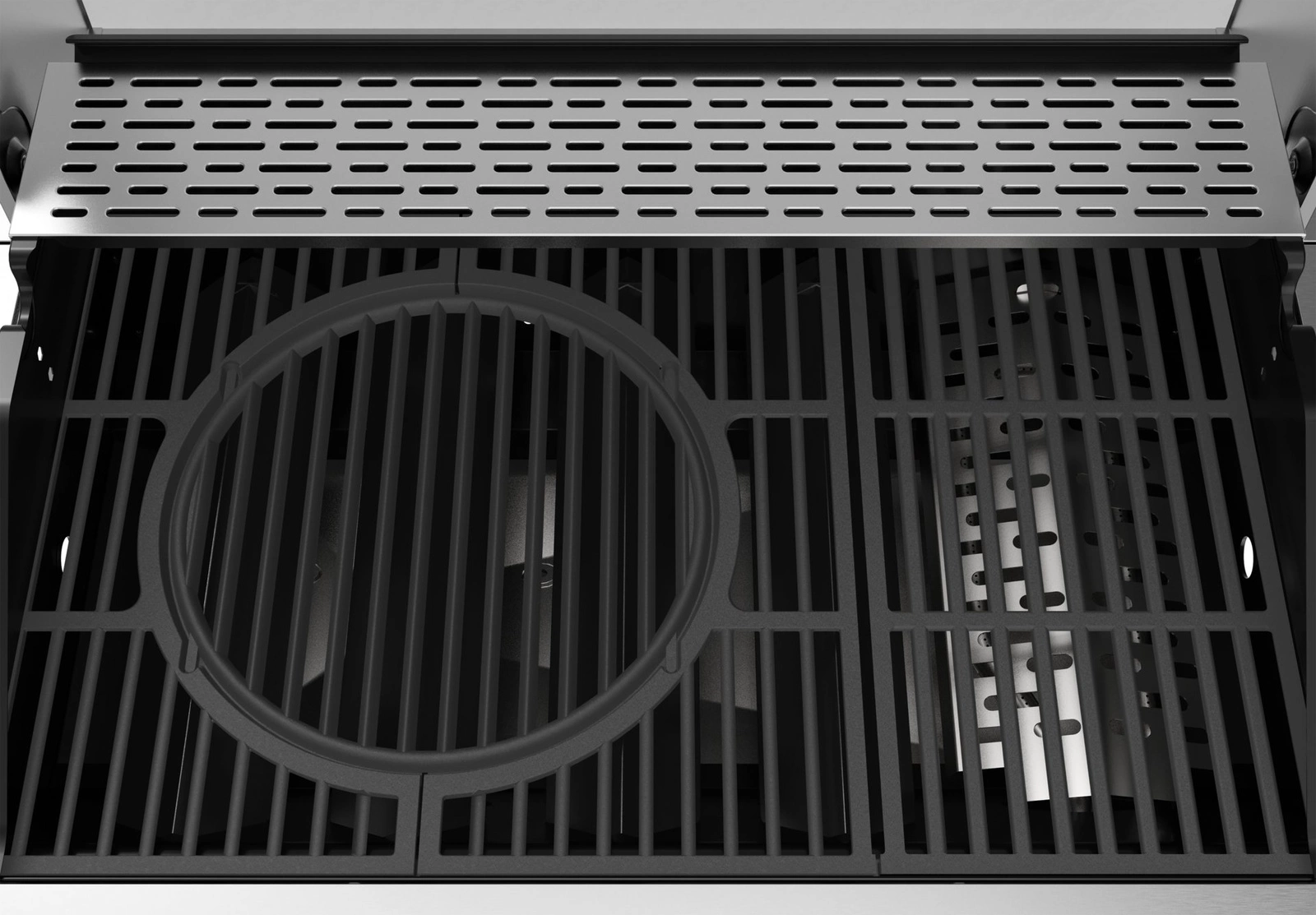Výkon: Gril je vybavený 5 hlavnými horákmi s výkonom 3 kW každý (4 x 3 kW, 1 x 4 kW) a bočným infračerveným horákom s výkonom 3,5 kW, ktorý dosahuje extrémne vysokú teplotu 800°C – ideálne na prudké opekanie steakov a rýchlu prípravu jedál (tzv. sear).