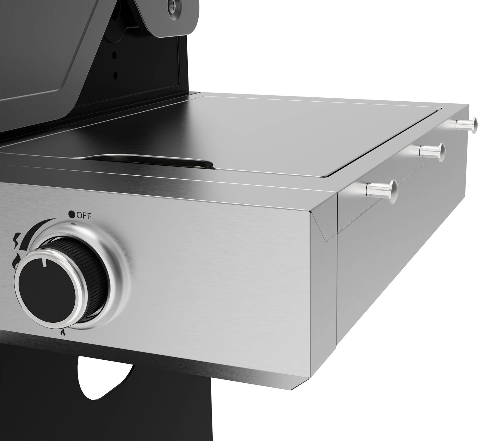 Pohodlie pri používaní: Gril je vybavený automatickým zapaľovačom v ovládači, čo umožňuje rýchle zapálenie. Ovládanie je pohodlné vďaka regulátorom teploty. Dvojvrstvové veko z nerezovej ocele s integrovaným teplomerom umožňuje presnú kontrolu teploty počas grilovania.