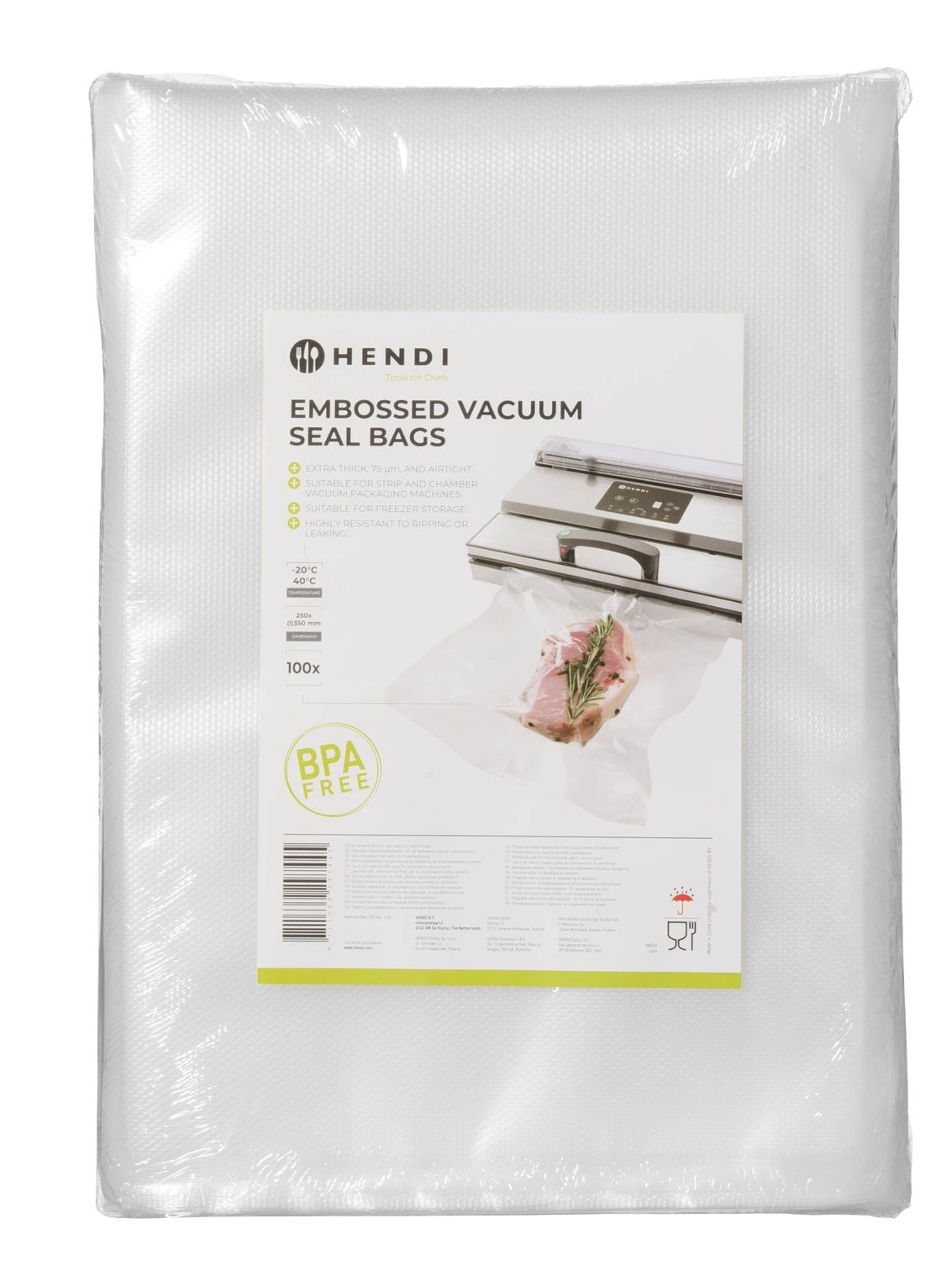 Vrecia s molitanom pre baličky lamiel. Vnútorná vrstva z polyetylénu - určená na styk s potravinami, vonkajšia vrstva - z polyamidu (nylonu) zvyšuje vzduchotesnosť. Na použitie pri teplotách od -40 do 40 stupňov Celzia. Reliéf v tvare diamantu na ľahké odsávanie vzduchu a pr°ikáciu. Neobsahuje bisfenol A (BPA).