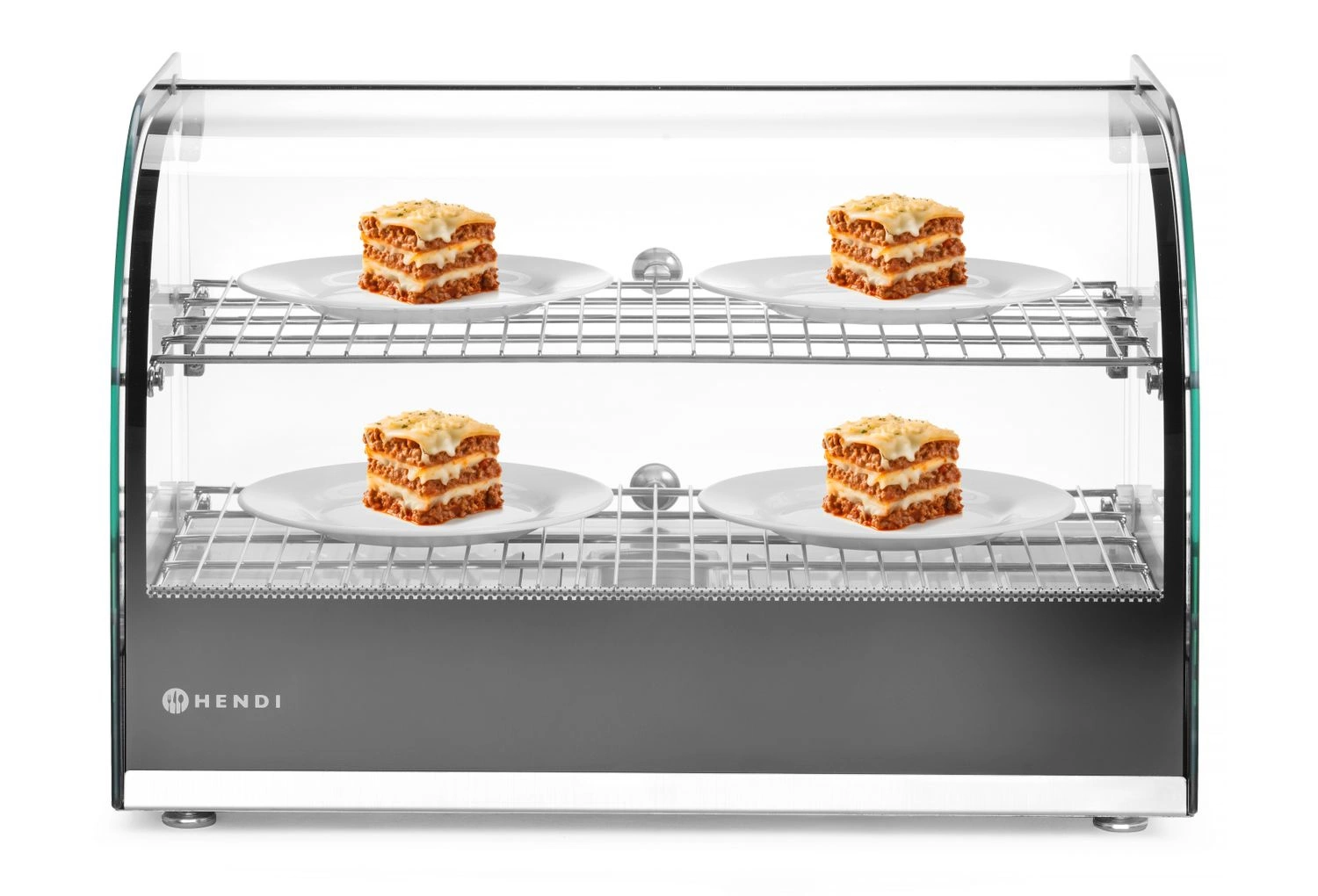Vyhrievaná vitrína HENDI 273999 bola navrhnutá s dôrazom na pohodlné používanie a hygienu. Dvojúrovňová konštrukcia umožňuje súčasne vystavovať väčšie množstvo produktov a telo z nehrdzavejúcej ocele zaručuje odolnosť voči intenzívnemu používaniu a jednoduché čistenie. Zaoblené predné sklo nielenže priťahuje pozornosť zákazníkov, ale tiež uľahčuje sledovanie ponúkaných produktov.