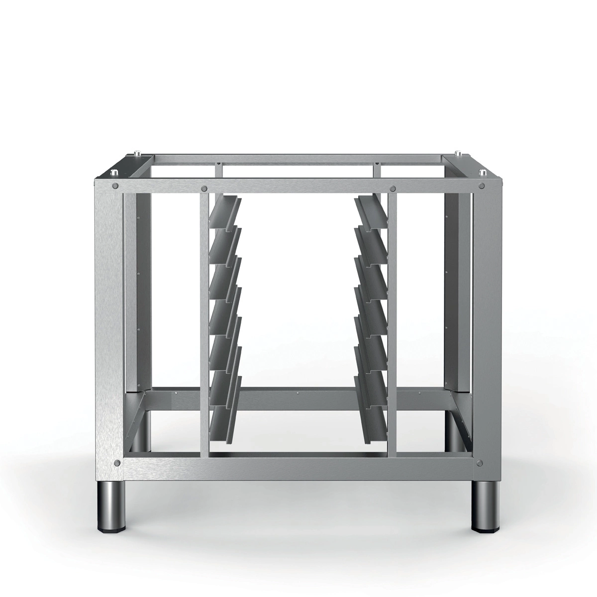 Stojan je určený pre konvektomaty a jeho kapacita umožňuje pohodlné skladovanie až siedmich GN 1/1 nádob alebo plechov s rozmermi 60x40 cm. Vďaka tomu je možné lepšie zorganizovať kuchynské zázemie a rýchlo reagovať na potreby počas výdaja jedál. Pevná konštrukcia zaručuje bezpečnosť pre pec aj skladované príslušenstvo.