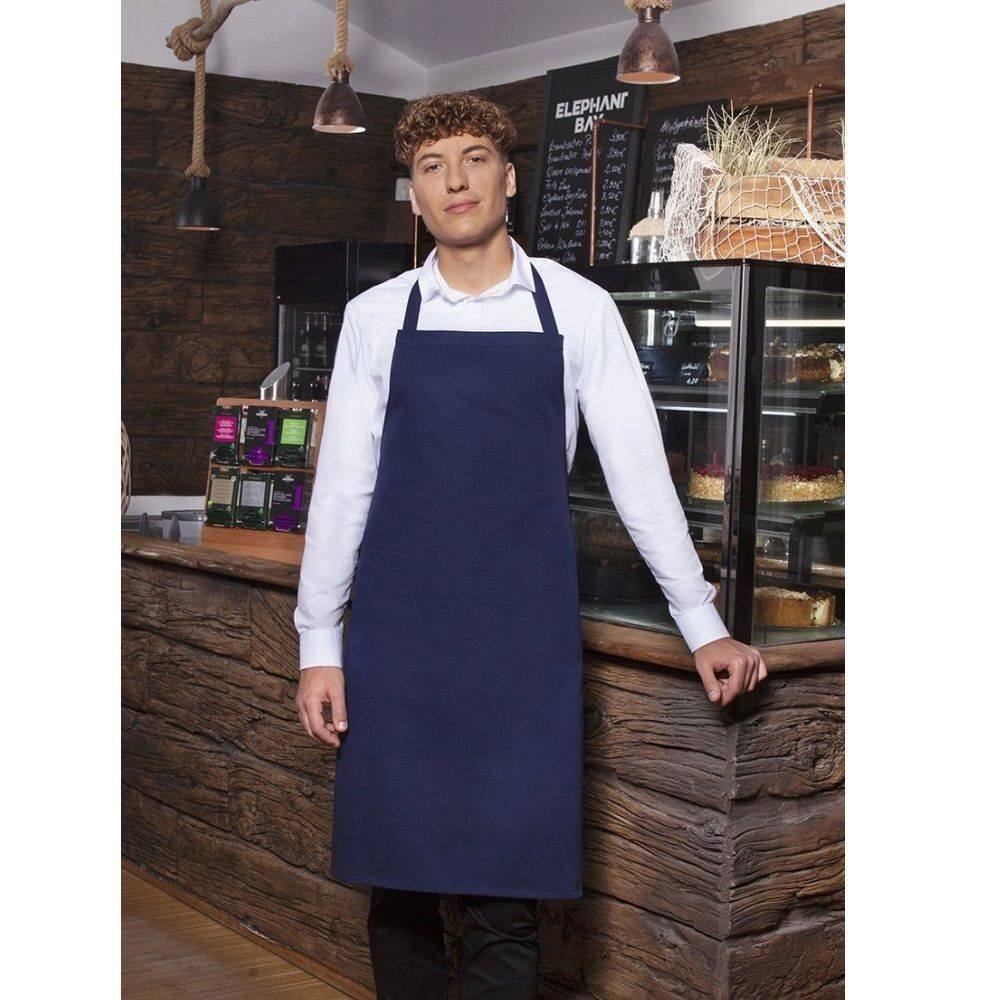 Základná kuchárska zástera značky Karlowsky. Námornícka modrá. Vyrobené v 65% polyester / 35% bavlna. Diagonálna väzba. Rozmery 75x100 cm. Popruh na krk z rovnakého materiálu ako zástera, dlhý približne 60 cm. Možno prať v práčke a chemicky čistiť. Vhodná na žehlenie.