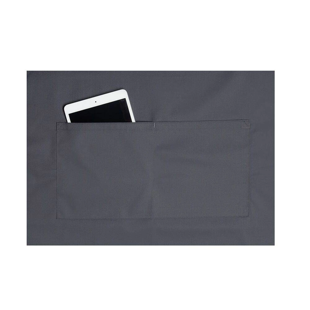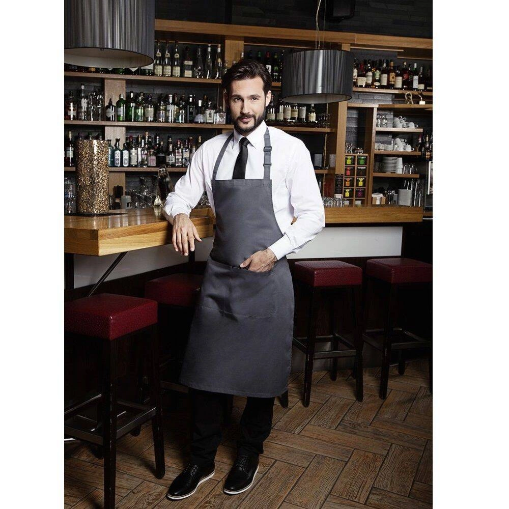 Základná kuchárska zástera značky Karlowsky. Antracitová farba. Vyrobené v 65% polyester / 35% bavlna. . Diagonálna väzba. Rozmery 75x90 cm. Zástera s popruhmi zo zásterového materiálu so zosilnenými napínacími bodmi - popruh na krk so sponou na nastavenie dĺžky cca 70 cm - náplasťové vrecko s 2 priehradkami (40 x 20 cm). Možno prať v práčke a čistiť chemicky. Vhodné na žehlenie.