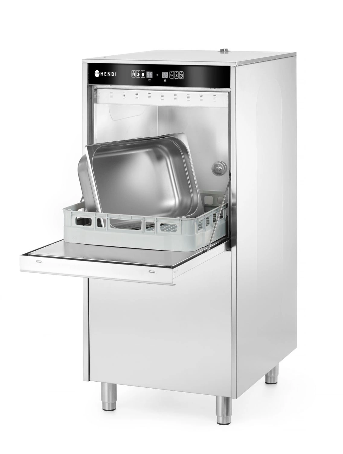 Drhlačka na podnosy a hrnce 50x60Elektronický, s dávkovačom pracieho prostriedku a vypúšťacím čerpadlom. Ideálny na umývanie a umývanie hrncov a panvíc, GN nádob, plechov na pečenie 600x400 mm, termosiek, podnosov a príborov. 3 riadené umývacie programy, 3/120 s, 180 s, 240 s. Teplota umývania je 82°C Teplota umývania 60°C, má prídavný elektronický panel a automatický systém čistenia. Skriňa je vyrobená z nehrdzavejúcej ocele.