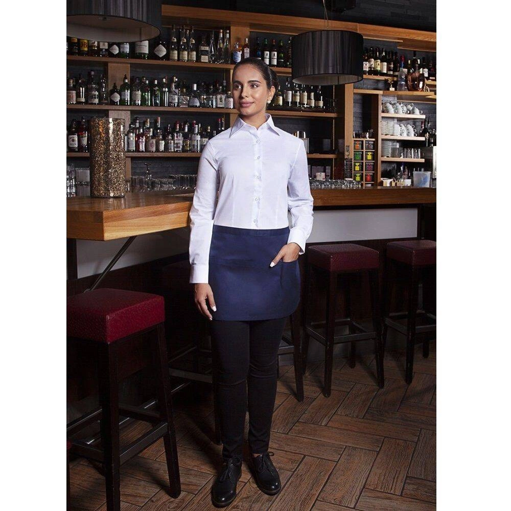 Zástera Basic s vreckami Karlowsky. Námornícka modrá farba. Vyrobené zo 65 % polyesteru a 35 % bavlny. Kučeravá väzba. Rozmery 60 x 35 cm. Zavinovačka s opaskom z rovnakého materiálu. Opasok vystužený dodatočným opletením. Vsuvné vrecko s rozmermi 60 x 22 cm po celej šírke pásu s 3 praktickými priehradkami (každá priehradka 20 x 22 cm). Možno prať na 60 °C. . Nebieľte. Nesušte v sušičke. Žehlite pri teplote max. 150 °C °C.