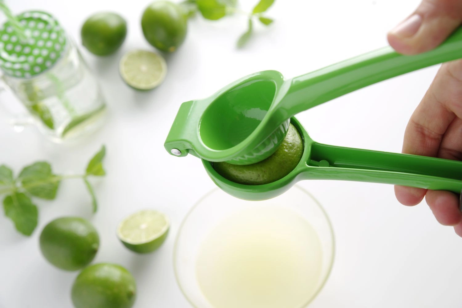 Citrusósqueezer (pre limetky) rozmery 20,3 x 6 x 4 cm. Vyrobené z hliníkovej zliatiny s práškovou farbou v zelenej farbe. Ľahko sa udržiava v čistote. Odolný voči mechanickému poškodeniu.